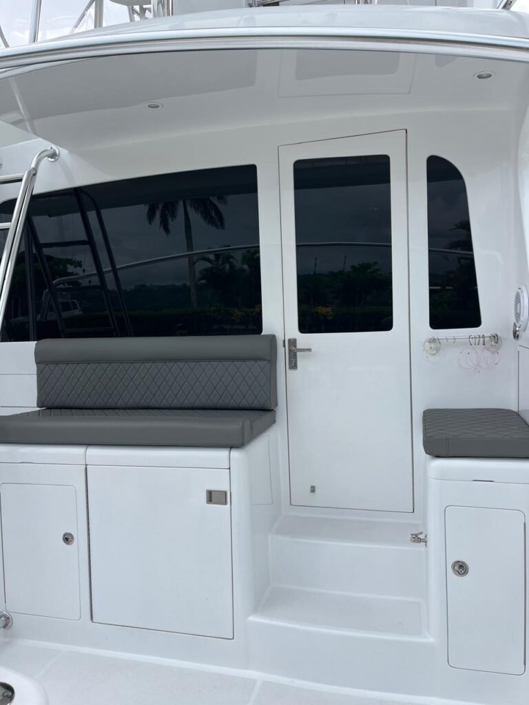 - Fully air-conditioned cabin with seating area, galley, and private head